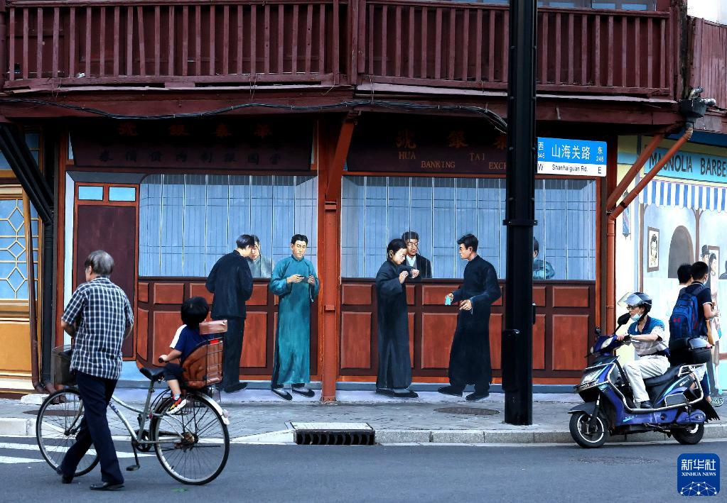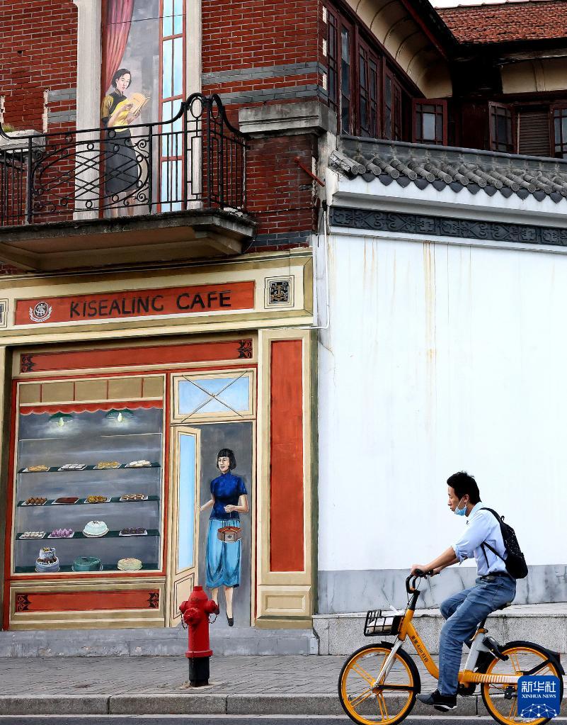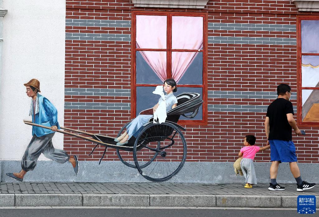 正在进行拆迁改建的上海市平德里是典型的石库门弄堂聚集地,一些绘画爱好者将昔日弄堂的生活场景描绘在石库门建筑物的外墙上,形成穿越时空的独特城市风景。(新华社记者 陈飞 摄)