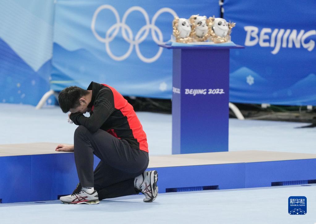 2月12日,中国选手高亭宇在比赛后。