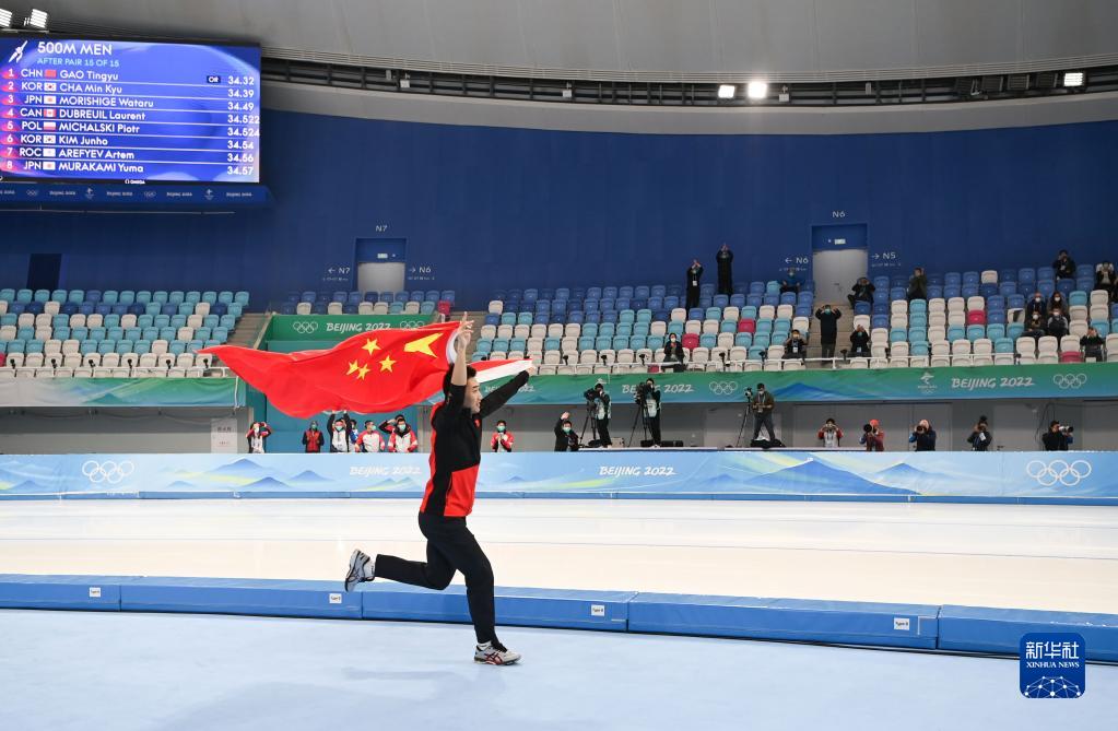 当日,北京2022年冬奥会速度滑冰男子500米决赛在国家速滑馆“冰丝带”举行。中国选手高亭宇夺得冠军。