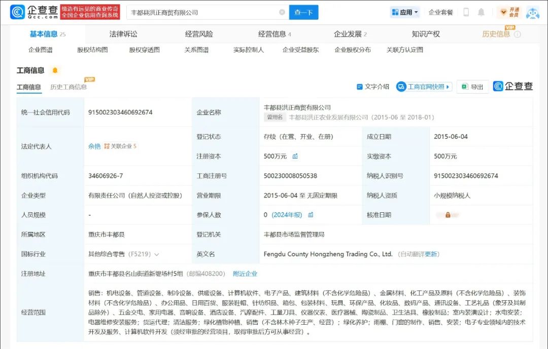 丰都县洪正商贸有限公司(央广网发 网络截屏)