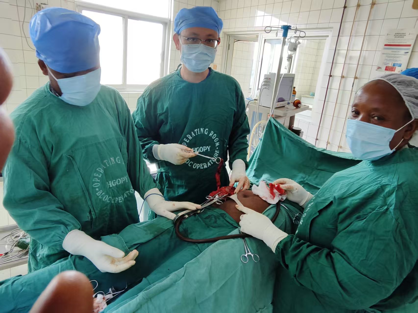 接到会诊请求后,刘海峥医生第一时间抵达病房,快速完成病情评估,果断提出急诊开腹探查手术方案,并联合当地医院妇产科医生Ehete及麻醉、护理团队启动多学科协作。术中探查发现,患者阑尾已完全坏疽穿孔,周围形成巨大脓肿,脓液弥漫腹腔且小肠与周围组织严重粘连,腹腔感染程度远超预期,手术操作精度与风险系数大幅提升。凭借15年深耕普外科与结直肠专业的深厚积淀,刘海峥医生沉着应对复杂解剖环境,精准分离粘连组织,顺利切除坏死阑尾,对腹腔脓液进行充分引流冲洗,全程严密监测孕妇生命体征及胎儿情况,最大限度降低手术对妊娠的不良影响,历经一小时精细操作,手术圆满成功。