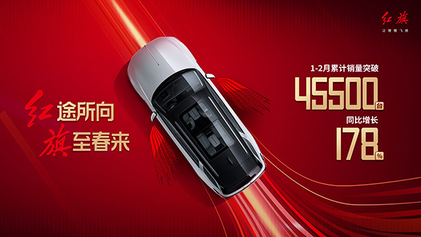 经过三年努力,新红旗在品牌塑造、造型创意、产品研发、技术创新、品质质量、营销服务等诸多方面取得了令人瞩目的成果。踏着春天的脚步,伴着柳芽的新出,红旗品牌2021年1-2月的销量也新鲜出炉,累计销量突破45500台,同比增长178%。2021年作为“十四五”开局之年,更是企业奋发向上的关键之年。红旗作为民族的骄傲,正大步向前,向全世界展示中国造车的硬实力。