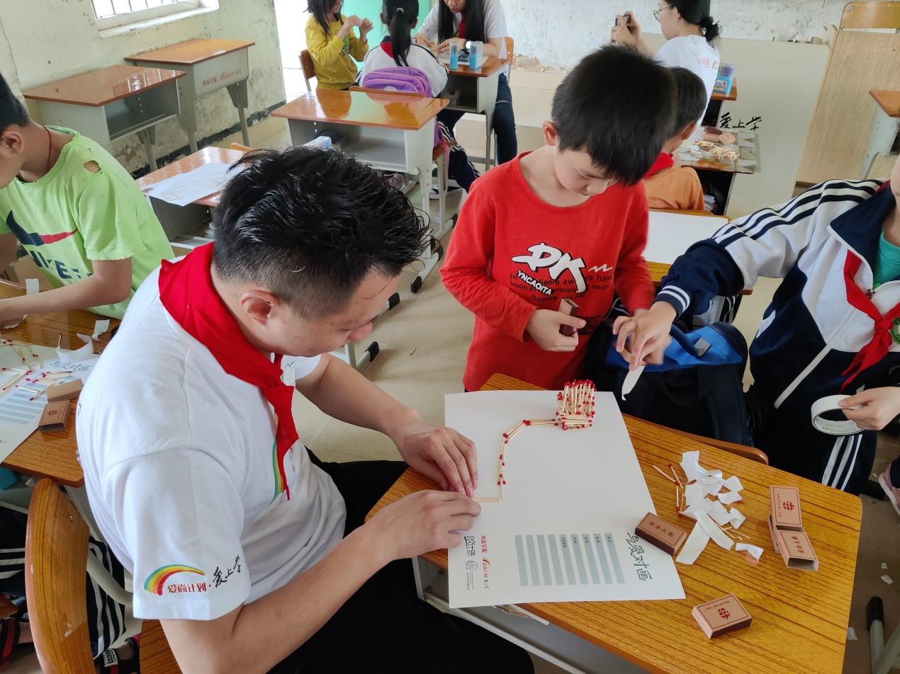 尚品宅配的志愿者们运用全屋整装定制公司优势,把空间的建筑概念带到了课堂。他们以火柴棒、热熔胶作为原材料,从房屋构建的角度出发,带领高年级的学生们搭建出一个个具有空间感的建筑。另一边的艺术家们,则以“美丽的家乡”为主题,引导学生们用色彩描绘出自己心中的家乡。