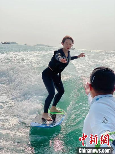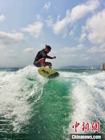 中新网三亚3月16日电 (记者 王晓斌)尾波冲浪这项“年轻”的水上运动在三亚兴起。