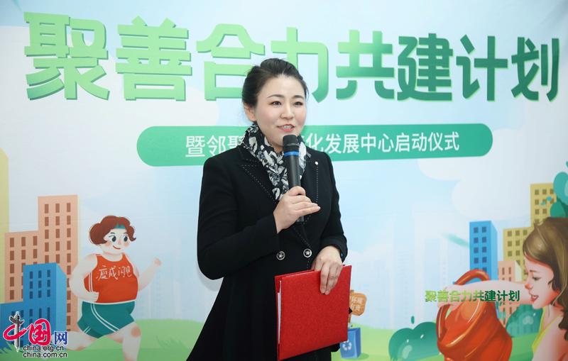 新浪浙江总编、杭州民进传媒工作委员会副主任、邻聚力善文化发展中心副理事长余丹凤在启动仪式上讲话。