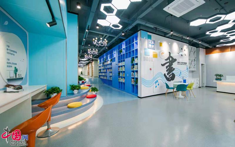 花园社区邻聚力善文化发展中心中的图书馆。