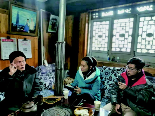 中国日报记者王小予和樊子豪采访老党员。