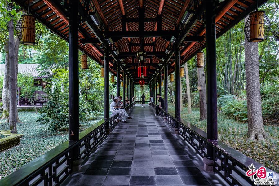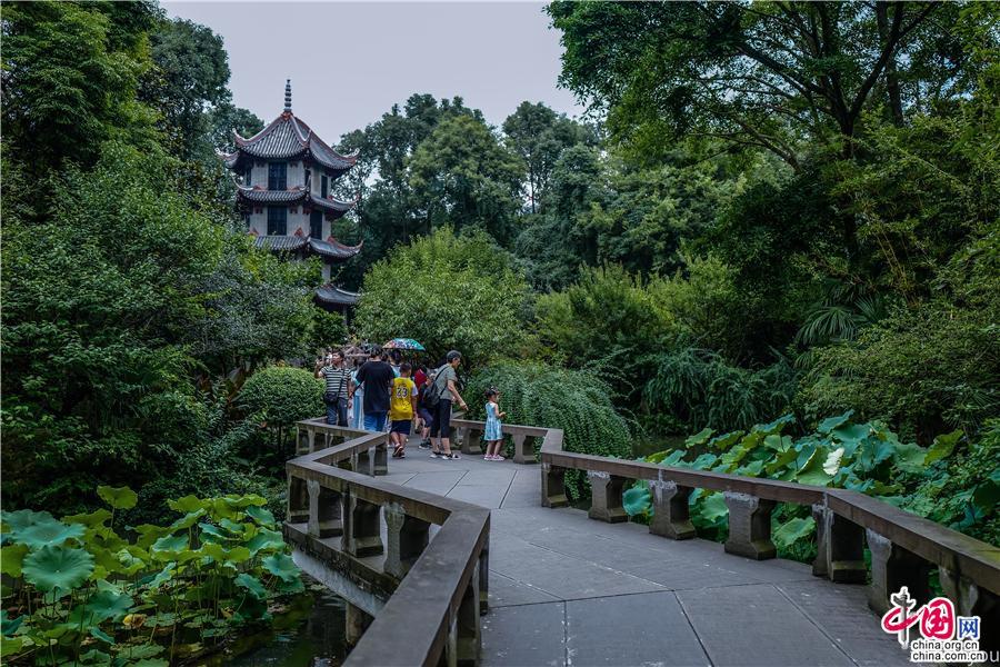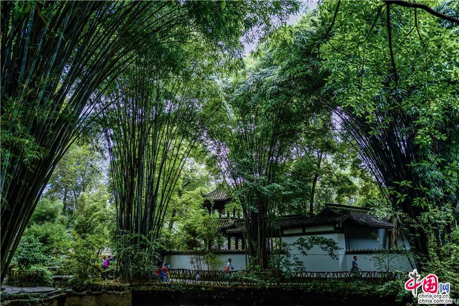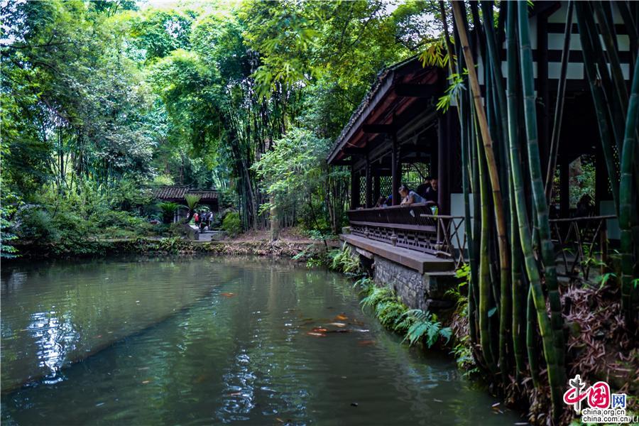 杜甫草堂也是中国园林艺术的经典所在。草堂建筑以中式园林融入川西民居风格,建筑格局与山水植被以及匾额题咏呼应,以彰显杜甫诗圣文学艺术造诣,体现其精神内涵,意境尽在一草一木一亭间,杜甫草堂就在浣花溪畔,在杜甫生命凝结的诗篇里传颂了千年。