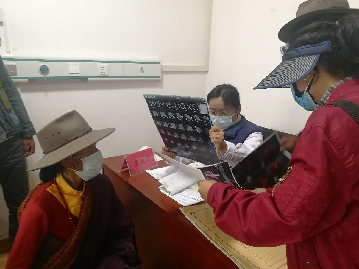 听说北京专家来乡里的卫生院进行义诊,藏族妇女果洛求吉在丈夫的陪同下,早早地赶到义诊点排队。
