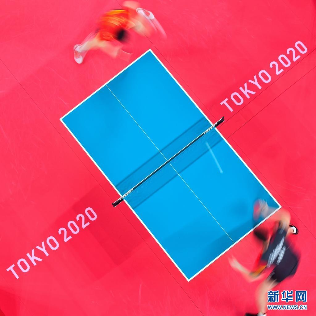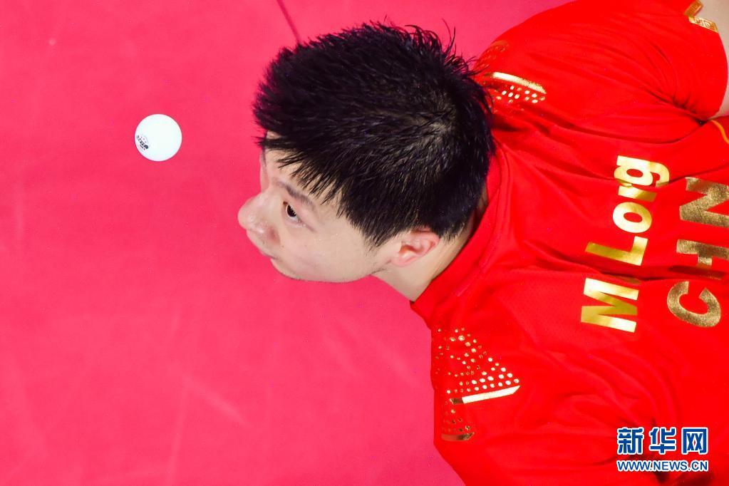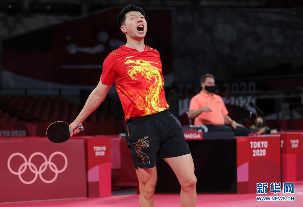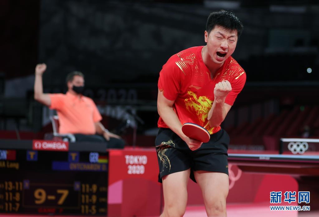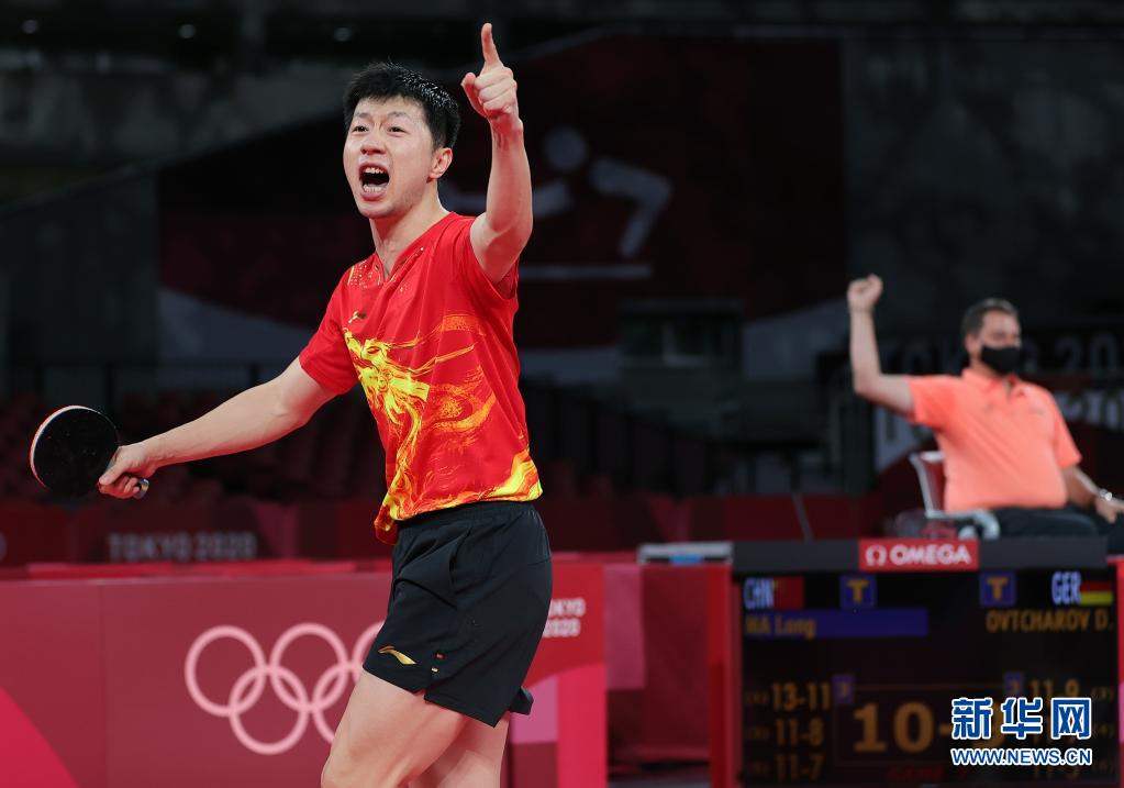 当日,在东京奥运会乒乓球项目男子单打半决赛中,中国选手马龙以4比3战胜德国选手奥恰洛夫,晋级决赛。(新华社记者 王东震 摄)