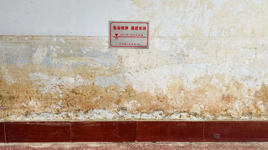 图为7月20日洪痕。新华网发