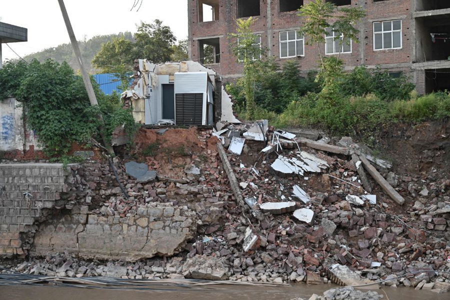 图为米河镇被冲毁的通信机房。新华网发