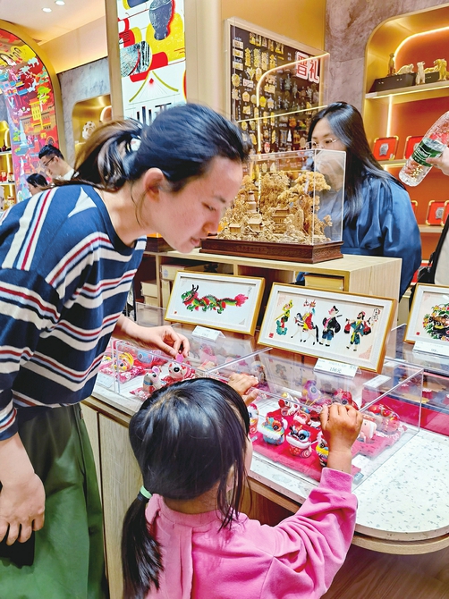 晋礼城市会客厅文创店内,珐华器、玉雕、推光漆器、泽州铁器、上党堆锦等多种非遗作品,黎侯虎衍生穿戴、晋绣丝巾等非遗融合产品,一站式展示了山西文化及地方特色。精美的文创产品尤其受游客青睐,云冈石窟千佛龛冰箱贴、“悟空”皮影画、“跟着悟空游山西”纪念门票……可谓五花八门。店长张涛对记者说:“目前,文创产品已开发出18个系列、200多个原创IP,共投产2000多个单品。”