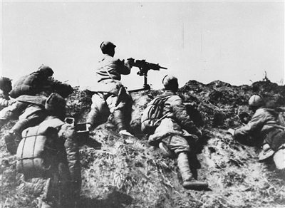1937年日本侵略者蓄意制造七七事变,发动全面侵华战争。中国军民对日本侵略者进行了顽强抵抗。中国由此进入全民族抗战阶段,并开辟了世界反法西斯战争的东方主战场。图为中国军队向进犯日军还击。 |