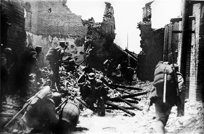 1938年初,为阻止日军进攻,中国军队先后调集兵力与日军展开徐州会战,并于4月上旬取得台儿庄大捷。图为中国军队与日军在台儿庄巷战。 |