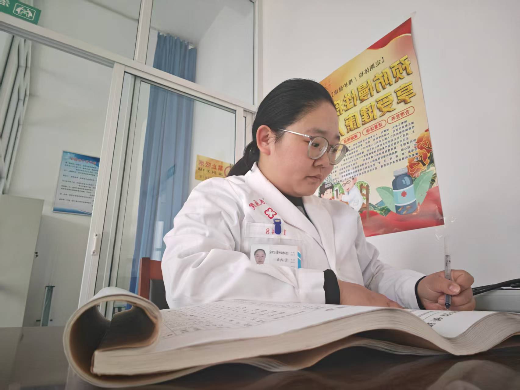 河神庙村共有1363人,其中65岁老年人199人,高血压患者176人,糖尿病患者37人,还有8名精神障碍患者、10名孕产妇及46名0-6岁儿童。初接手工作时,面对家庭医生签约、慢病随访、预防接种、老年人体检等繁杂的任务,范峤茜常常手忙脚乱。但她从不气馁,只要遇到不懂的问题,就第一时间向其他乡村医生请教,晚上回到卫生室还会加班整理资料,复盘一天的工作。
