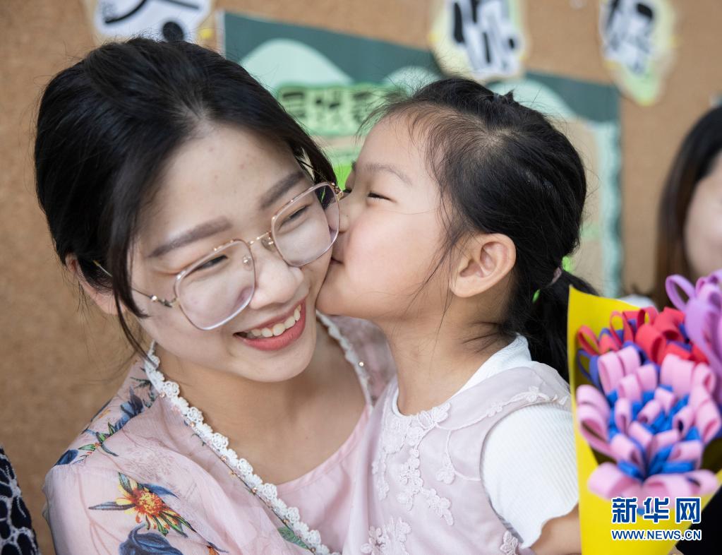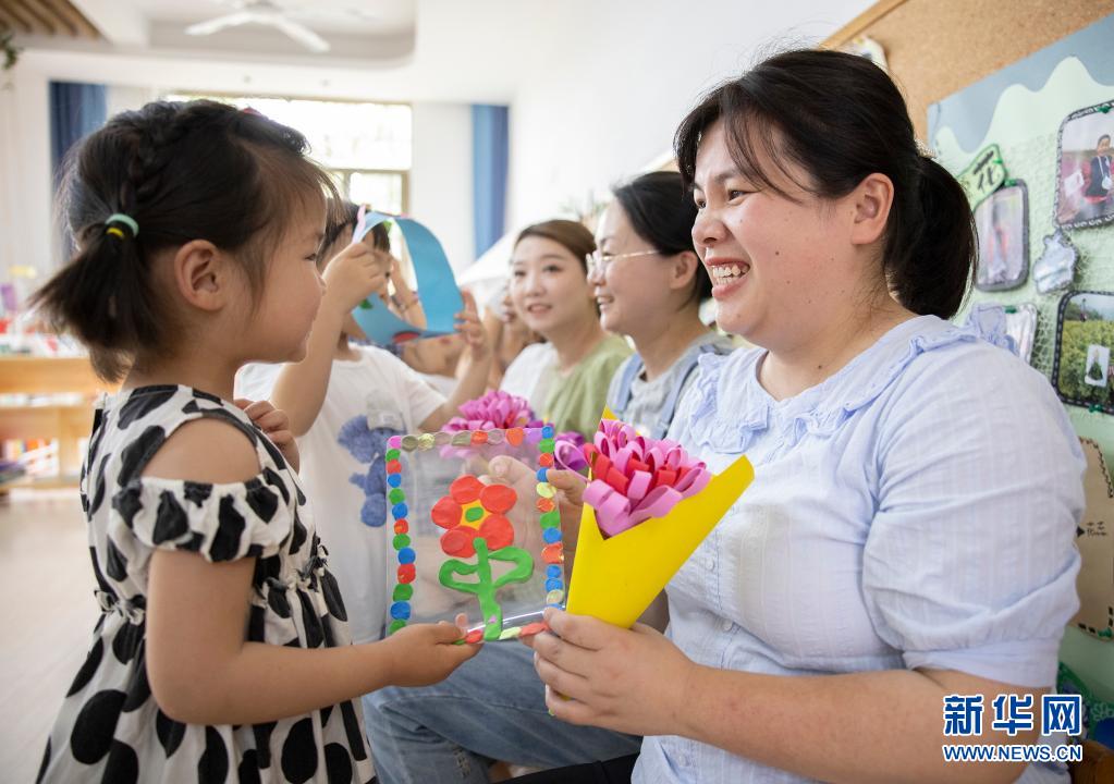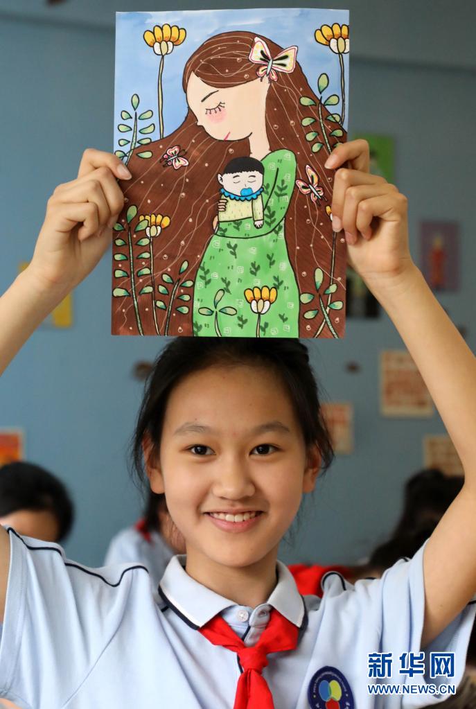 母亲节来临之际,孩子们通过各种各样的方式,表达对母亲的感恩之情。(新华社发 徐诚 摄)