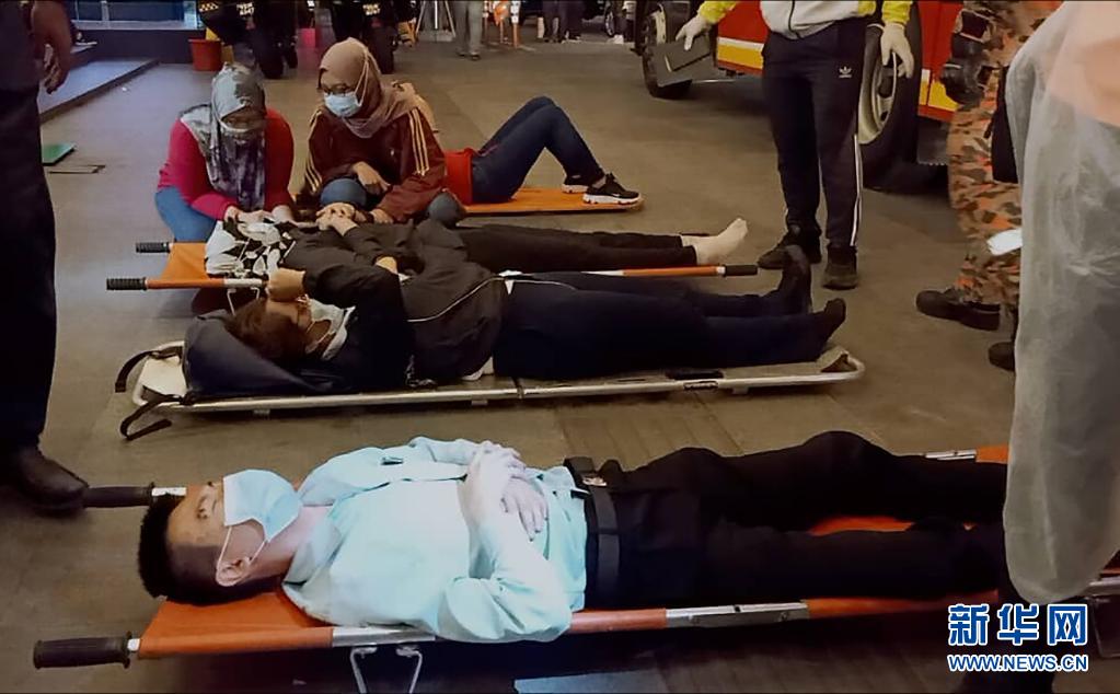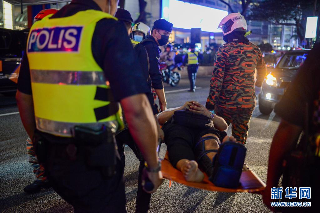 5月24日,在马来西亚首都吉隆坡,救援人员救助地铁列车相撞事故伤者。新华社发(菲兹 摄)