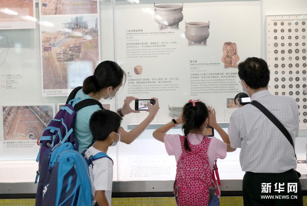 乘客在宋皇台站的“文物馆”观看展览(7月6日摄)。
