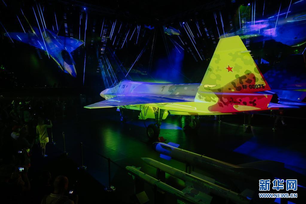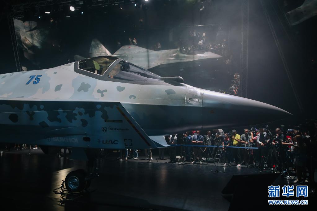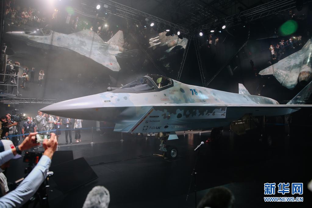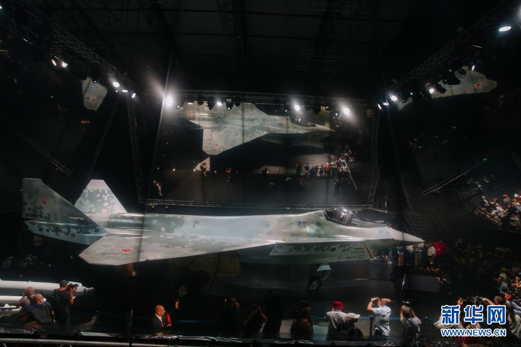当日,第15届莫斯科国际航空航天展览会在茹科夫斯基市拉开帷幕,俄新型单发五代战斗机亮相航展。(新华社发 叶甫盖尼·西尼岑摄)